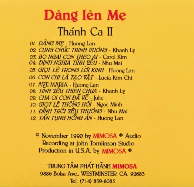 Mimosa CD 1 - Thánh Ca 2 - Dâng Lên Mẹ (1990)