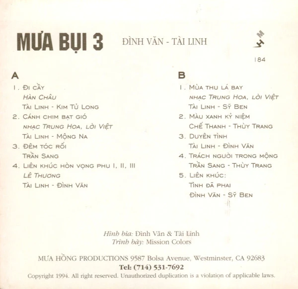 Mưa Hồng 184 - VA - Mưa Bụi 3 (1994)